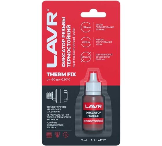 Средство для герметизации и фиксации резьбовых соединений, подверженных высоким температурным нагрузкам и требующих разборки только в случае капитального ремонта. Препятствует саморазвинчиванию деталей при вибрационных и температурных нагрузках.