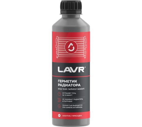 Герметик радиатора Lavr Стоп-течь 310 мл Ln1105 используют для заполнения отверстий до 2 мм в системах охлаждения, батареях, печках и шлангах. Продукт эффективно устраняет течь и предотвращает образование новых. Состав быстро застывает только в местах протечки, не засоряя радиатор. Средство безопасно для двигателя, не повреждает помпу или другие конструкционные детали.