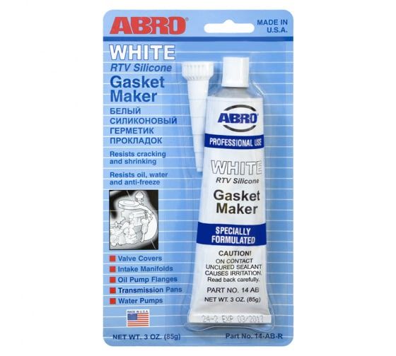 Герметик прокладок ABRO белый США 85 г принимает любую форму и успешно выдерживает сжатие, растяжение или сдвиг. Силиконовый состав предназначен для применения при температуре до +260°С. Продукт образует прочное соединение, устойчивое к большинству автомобильных жидкостей: масло, вода, антифриз (за исключением бензина).