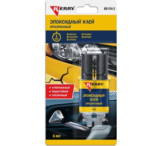 Эпоксидный двухкомпонентный клей KERRY прозрачный, 6 мл KR-154-2 - высококачественный эпоксидный двухкомпонентный состав быстрого отверждения предназначен для склеивания и восстановления деталей из различных материалов, таких как металл, дерево, большинство видов пластика, камень, кирпич, стекло, керамика и др.