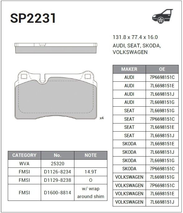 Колодки тормозные перед. HI-Q SP2231