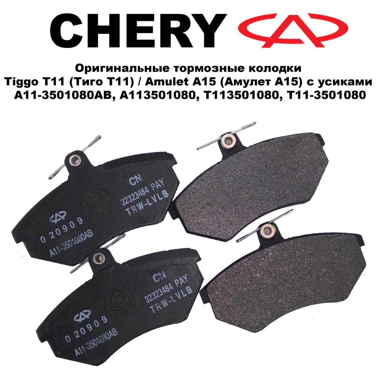 Колодки тормозные передние с ушком CHERY A113501080