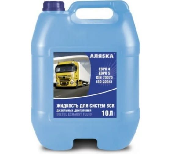 Жидкость для систем SCR дизельных двигателей АЛЯSКА мочевина, 10 л 5408 применяется в качестве добавочной рабочей жидкости в дизельных двигателях с использованием технологии селективной каталитической нейтрализации. Применение необходимо для достижения экологических нормативов Евро 4 и Евро 5 по выбросу вредных веществ.
