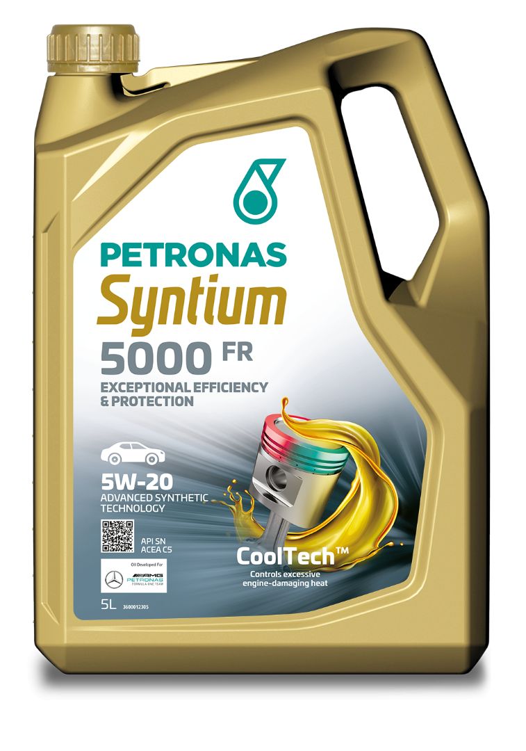 Моторное масло PETRONAS Syntium 5000 FR 5W-20 – это полностью синтетический смазочный материал, разработанный с применением технологии °CoolTech™, которая способствует эффективному регулированию тепловыделения, устойчивости к окислению и предотвращению разложения масла с образованием осадка, чтобы защитить узлы и сохранить КПД двигателя в течение всего срока замены масла.