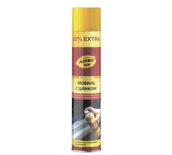 Мовиль с цинком ASTROhim аэрозоль, 1000мл AC-4808 используется для надежной защиты скрытых деталей автомобиля от коррозии. Средство наносится на днище кузова, арки колес, в места стыков между панелями кузова. Используется для антикоррозионной обработки сельскохозяйственной и производственной техники.