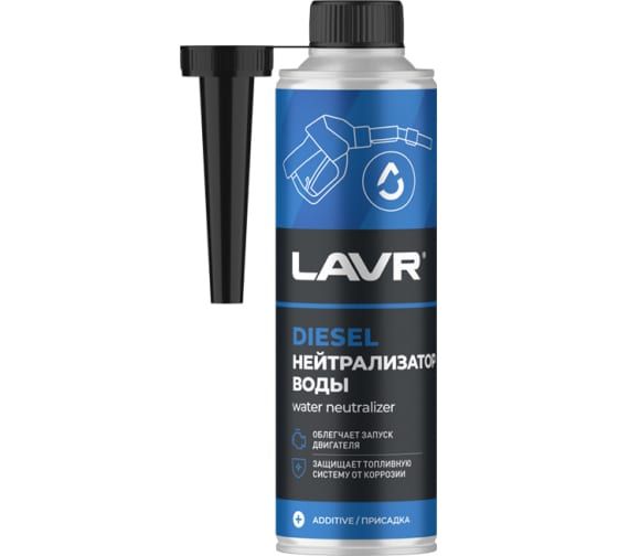Нейтрализатор воды Lavr присадка в дизельное топливо на 40-60л 310мл Ln2104 используют при возникновении конденсата в топливном баке. Средство эффективно удаляет лишнюю влагу из дизеля, предотвращает перебои в работе двигателя и надежно защищает топливную систему от износа. Входящие в состав компоненты препятствуют образованию коррозии металла и ледяных пробок, упрощают холодный запуск мотора в зимнее время года.