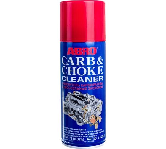 Очиститель карбюратора-спрей ABRO CC-200-R 283г используют для очищения дроссельной заслонки, карбюратора и других внутренних деталей системы подачи топлива.