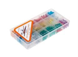 Применяются на большинстве отечественных автомобилей и иномарках. Набор включает в себя предохранители следующих номиналов: 5А, 7.5А *10шт., 10А, 15А, 20А, 25А, 30А *30шт., 35А *10шт., экстрактор 2шт.