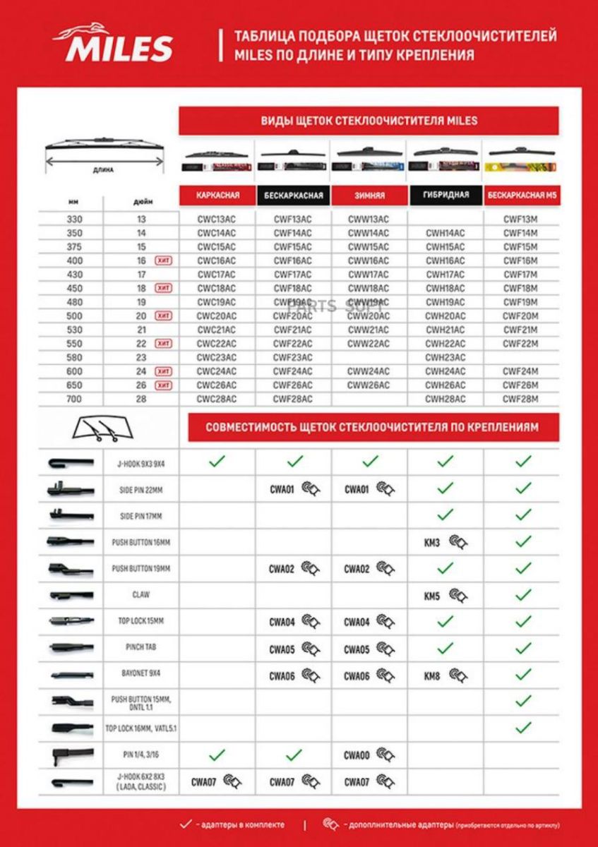 Щетка стеклоочистителя КАРКАСНАЯ (Шт) MILES CWC20AC
