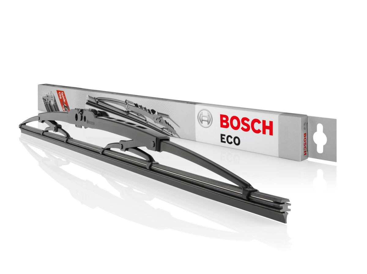 Серия стеклоочистителей Bosch ECO относится к экономичному сегменту и предназначена для автомобилей с креплением крючок без специфичных требований (таких как спойлер, форсунки стеклоомывателя или изогнутые щетки). Щетки Bosch ECO имеют цельнометаллическую конструкцию и удобный адаптер Quick-Clip для быстрой установки.