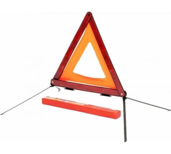 Знак аварийной остановки, представляет собой равносторонний треугольник. Внешняя сторона этого треугольника обклеивается полосой, изготовленной из светоотражающего материала. Это необходимо для того, чтобы он был заметен другим водителям с дальнего расстояния. Внутренняя сторона обклеивается флуоресцирующей яркой полосой. Соответсвует ГОСТ. Само изделие изготавливается из пластмассы, ножки из металла.